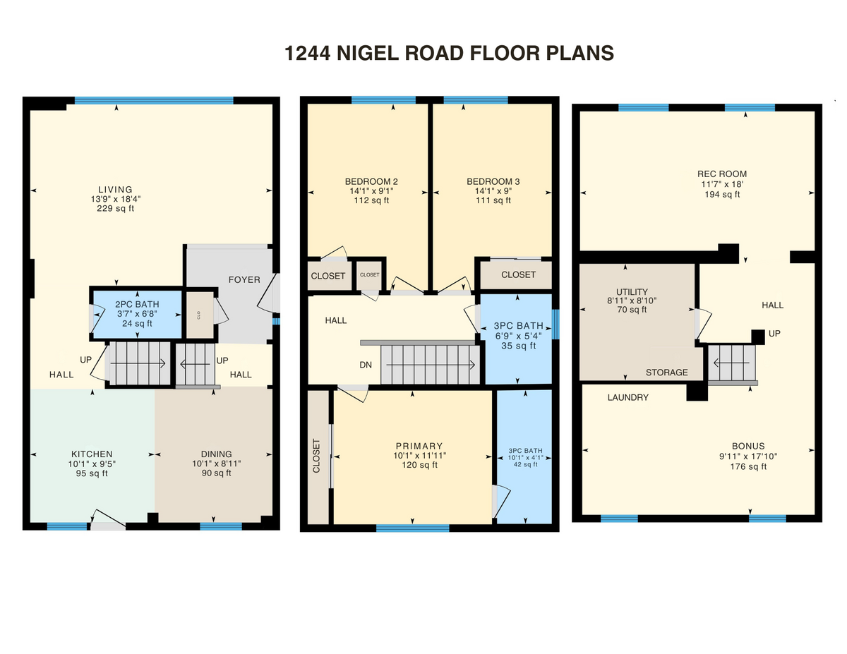 Upstairs, the primary suite offers ample closet space and a private 3-piece ensuite. Two additional bedrooms, each with large windows and closets, share a modern 3-piece family bath.